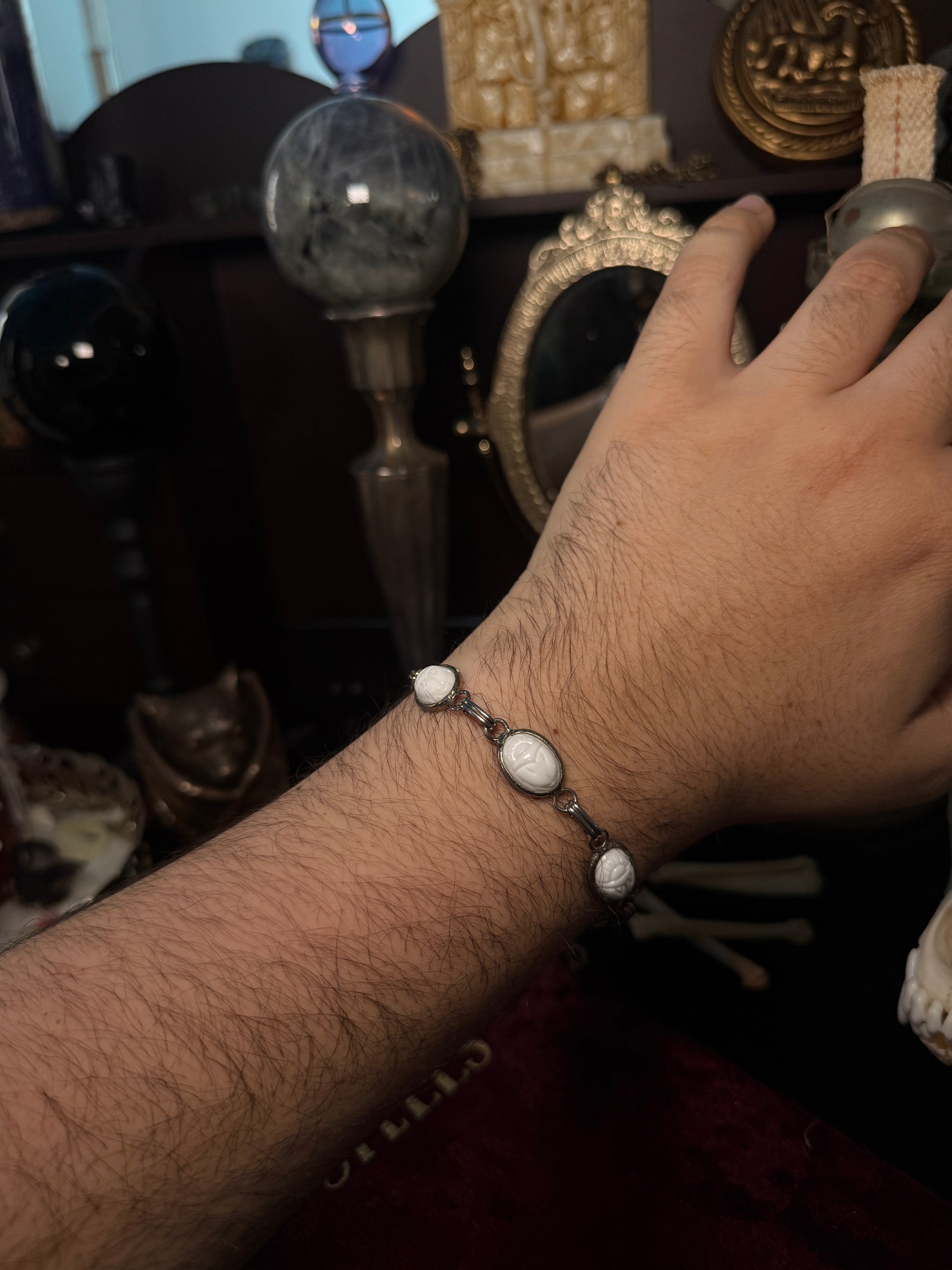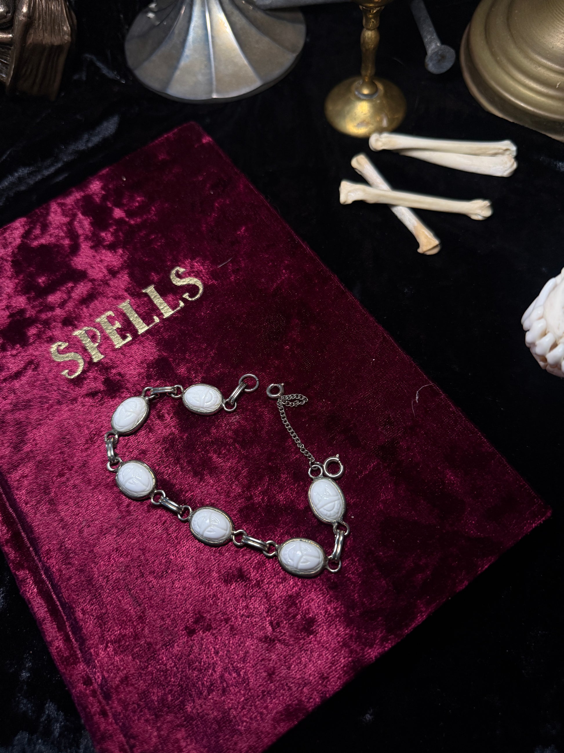 This piece reminds me of Elizabeth’s scarab necklace in the 2025 adaptation of “Frankenstein”. This bracelet also holds the symbolism of transformation many jewelers of the time have used it for.